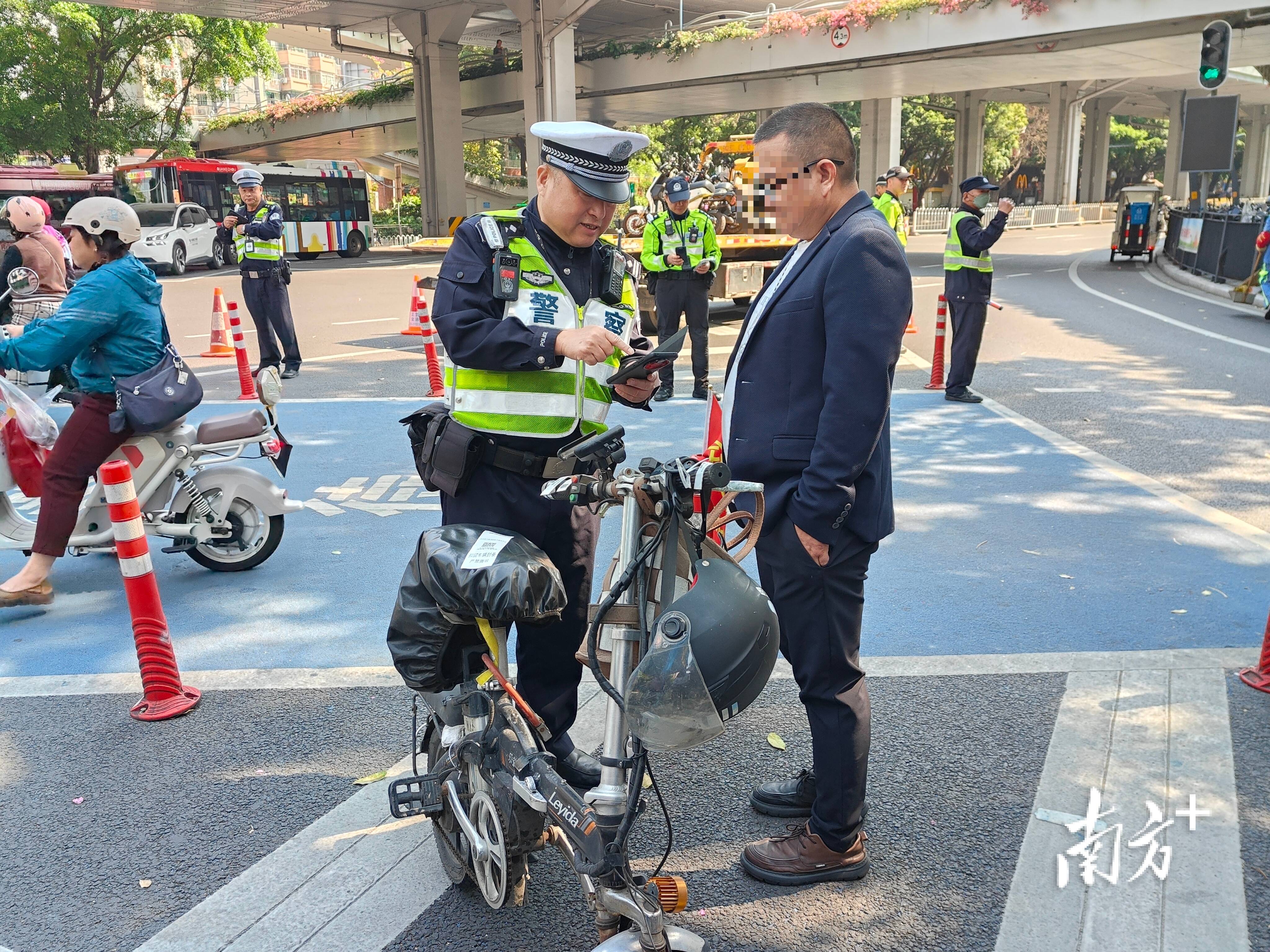 几分钟后,另一位骑行人也因故意遮挡电动自行车号牌被拦下。待交警核验该号牌后,发现事情并没有那么简单——车辆号牌为假且该车因超规无法上牌。原来,该骑行人在二手平台购买了此车,购买时,他已知情此车无法上牌。“卖家说会给我一个车牌,我知道是假车牌。”他说。最终,该电动自行车被交警依法予以扣留。