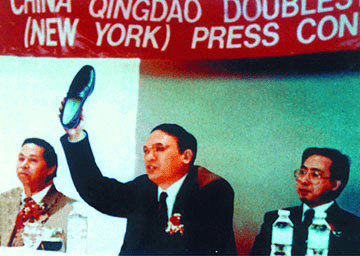 1992年,国营第九橡胶厂正式更名为双星集团。同年,双星作为中国企业在纽约召开新闻发布会,汪海在此次发布会上“脱鞋打广告”,引起震动。